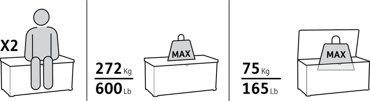 - Geschikt als zitplaats voor twee volwassenen (max. 272kg)