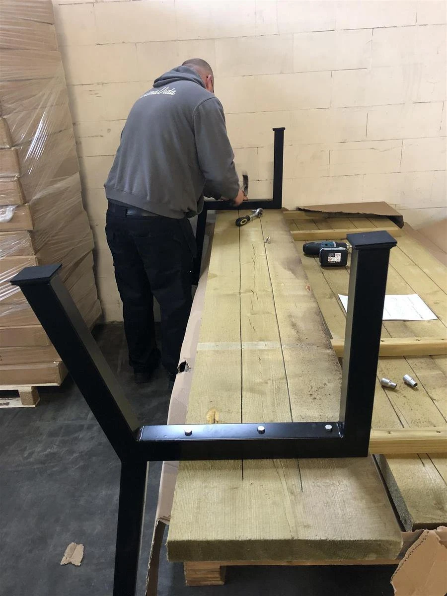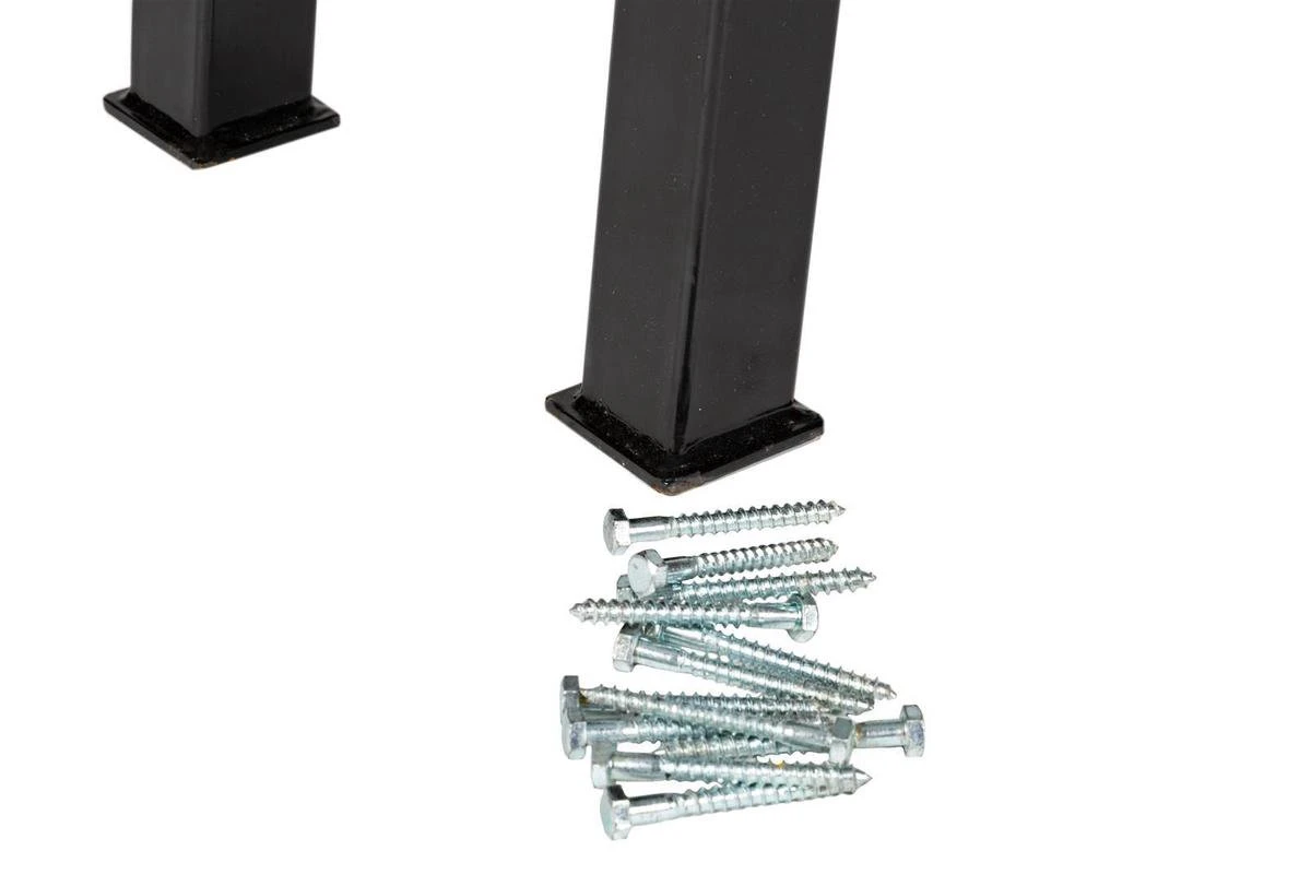 Deze industriele bankpoten (2 stuks) zijn gemaakt uit robuuste metalen kokers van 50 x 50 mm en wordt geleverd samen met 12 roestvrijstalen houtdraadbouten van m8 x 80mm. Hierdoor zijn ze geschikt voor hout van minimaal 4 cm dik. Wil je de bank buiten gebruiken? Dat kan, mits je de zwarte coating niet beschadigd. De meegeleverde stukken vilt kun je gebruiken om onder de voetjes van de poten te bevestigen. Zo voorkom je beschadiging en roestvorming.