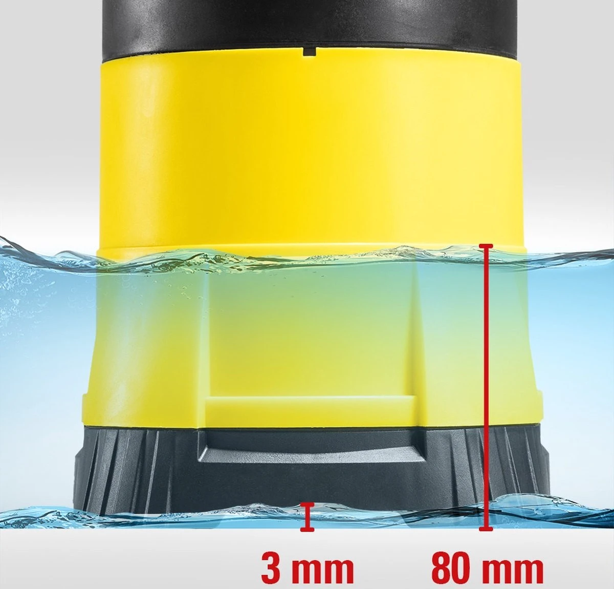 De schoonwaterpomp is bovendien geschikt, om vlak ondergelopen oppervlaktes bijvoorbeeld in kelders en zwembaden snel en grondig droog te leggen. Want de vlakzuigende TWP 4005 E kan vanaf een waterstand van maar 80 mm het binnenste pomprad starten, daarna pompt het apparaat op rechte ondergrond ‘wisdroog’ tot een restwaterstand van maar 3 mm.